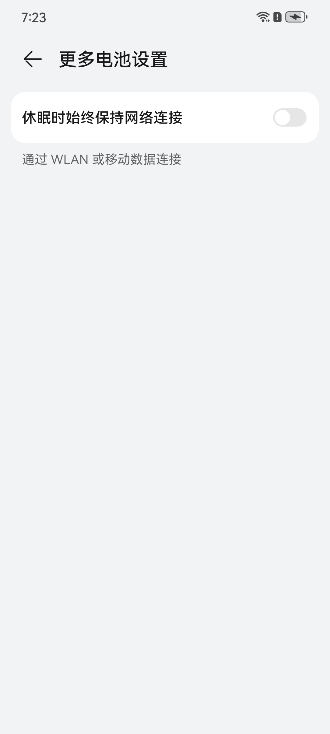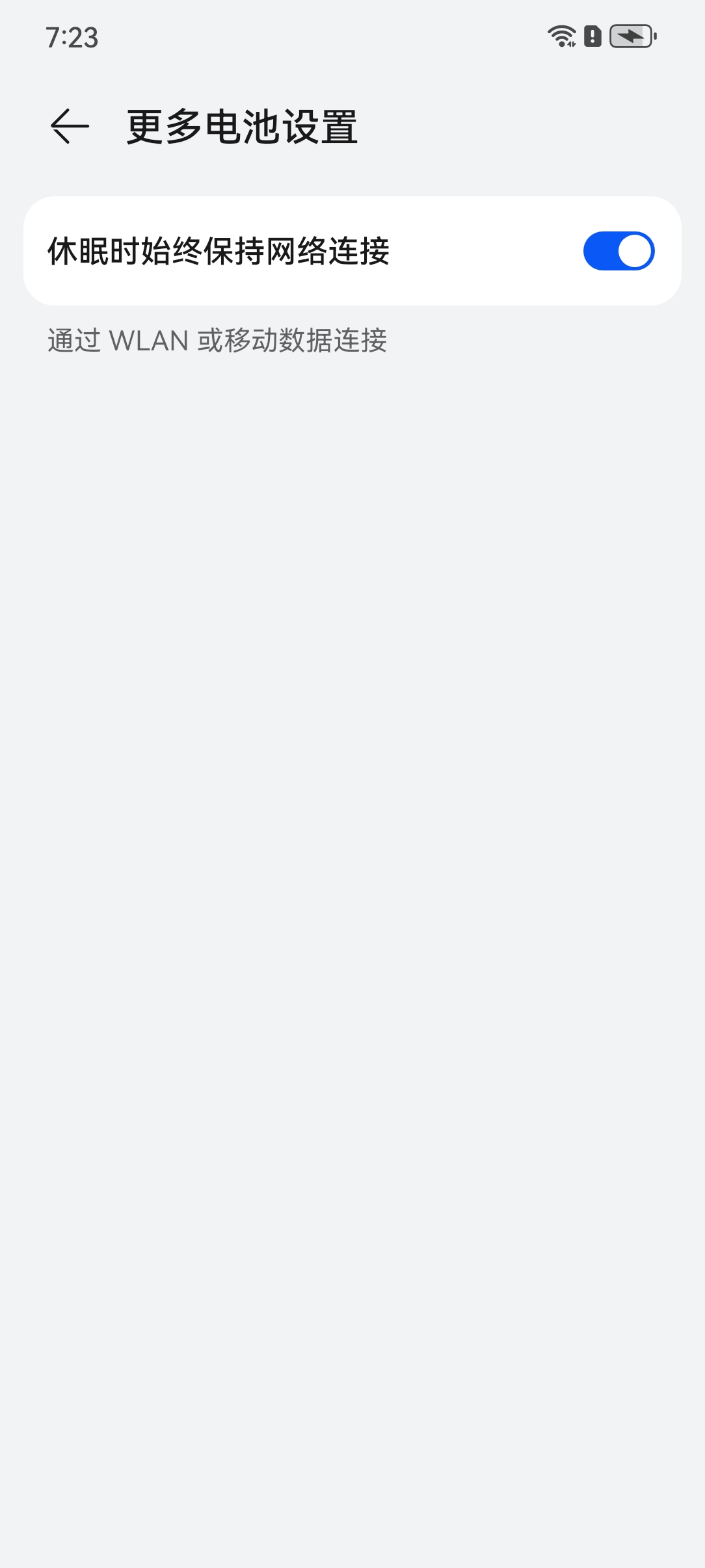进入设置 → 电池 → 更多电池设置 → 开启 休眠时始终保持网络连接 开关。